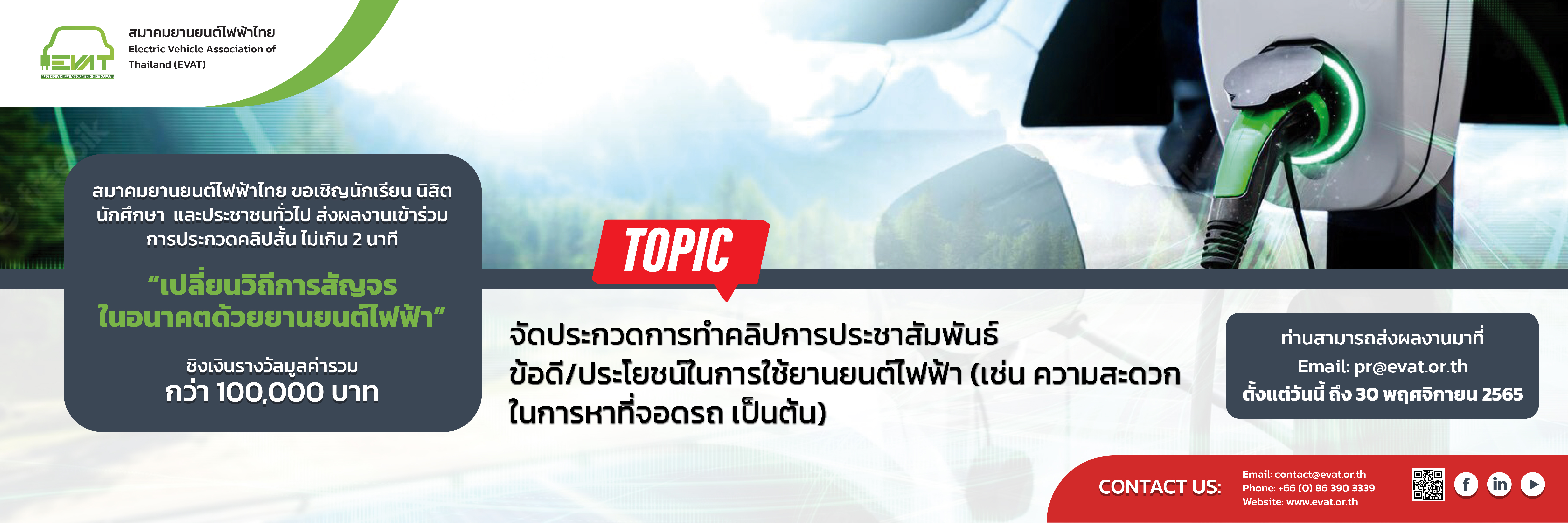 จัดประกวดการทําคลิปการ ประชาสัมพันธ์ ประจําปี 2566 ในหัวข้อ "ทําไมประเทศไทยเห็นว่า รถไฟฟ้าจําเป็น"